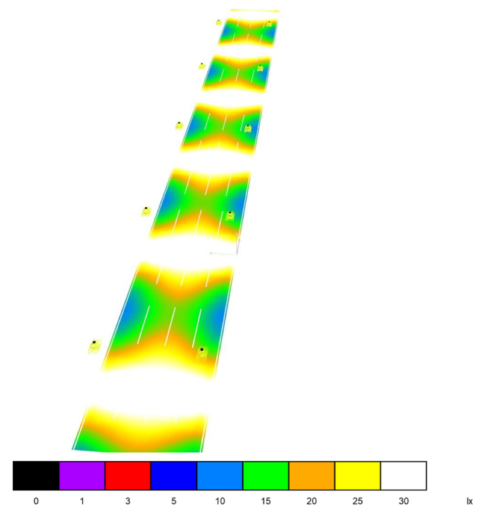 | Road Width: 15 m | Mounting Height: 8 m | Pole Distance: 30 m |