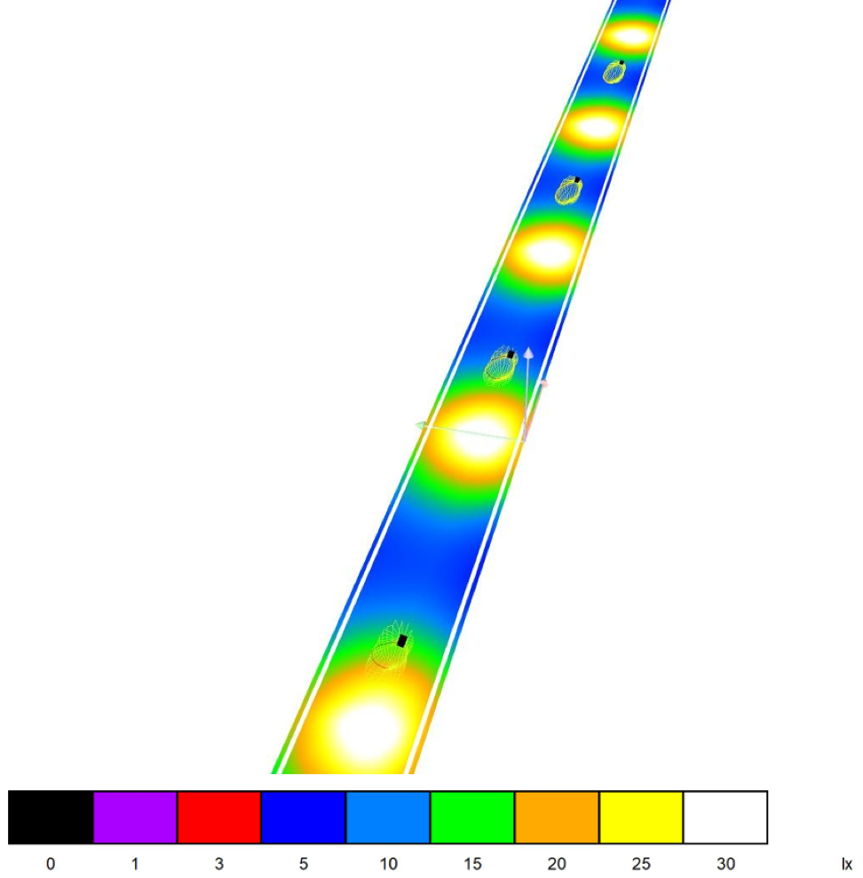 | Emax: 31 lux | Eav: 16 lux | U0:0.472 |